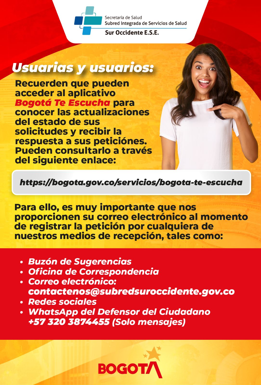 Correo electrónico institucional: contactenos@subredsuroccidente.gov.co