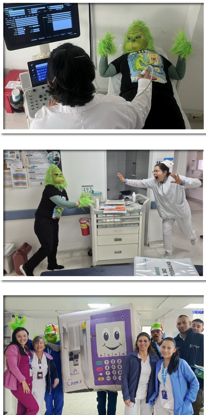 Las actividades se desarrollaron mediante stands informativos y recorridos por los servicios hospitalarios, incorporando una estrategia lúdica y pedagógica representada por el personaje del “Grinch de la tecnología”, quien simbolizaba las malas prácticas en el uso de los equipos. A través de esta dinámica, los equipos recibieron retroalimentación directa sobre el manejo seguro y adecuado de la tecnología, contando además con el acompañamiento de proveedores estratégicos como Electromedicina, ICU Medical y Teleflex, quienes brindaron capacitaciones especializadas.