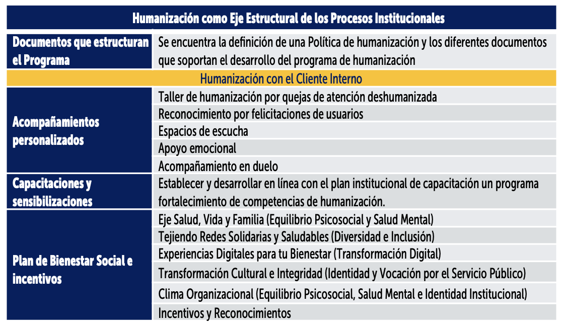 Boletín de la Boletín de la Paso a paso con calidadSección De esta manera, el Programa de Humanización se consolida como un instrumento estratégico para la construcción de ambientes laborales humanizados, empáticos y coherentes con la vocación del servicio público, quedando estructurado de la siguiente manera: