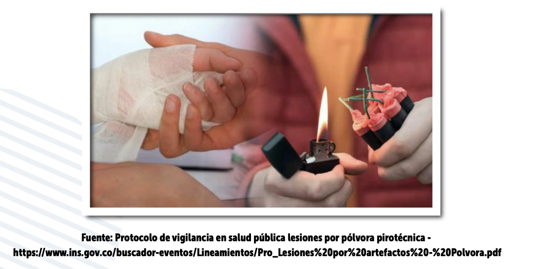 La temporada de fin de año es un momento para compartir en familia y con amigos, lleno de diversión y esparcimiento. Sin embargo, durante esta época también se presentan casos de personas que sufren lesiones por pólvora. Según el protocolo de vigilancia del Instituto Nacional de Salud, “las lesiones provocadas se deben a la naturaleza misma de la pólvora, ya que se comporta como un material inflamable, explosivo y tóxico. Por ejemplo, la Sociedad Americana de Cirugía de la Mano indica que los fuegos artificiales pueden alcanzar temperaturas de hasta 537°C y, por su capacidad de explosión e ignición, generan lesiones mutilantes y secuelas permanentes.”