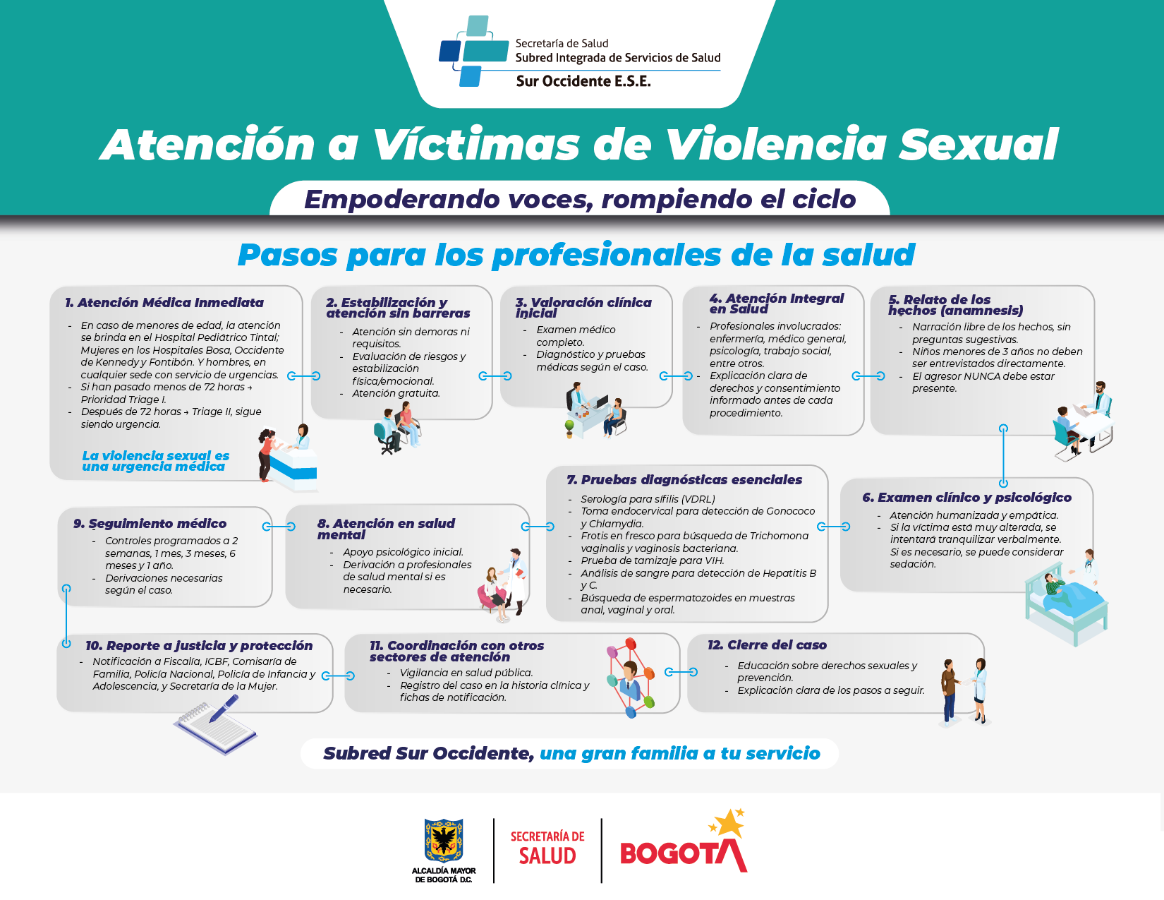 A través de la Ruta 13 se canalizan a los usuarios para que acudan a los servicios de salud, además se ejecuta el plan de prevención de violencias, se acuerdan espacios de capacitación para los colaboradores de la Subred y también a la comunidad para lograr sensibilizarlos frente a las relaciones solidarias entre género y derechos humanos. Adicional, se garantizan atenciones integrales en salud a la población objeto, desde intervenciones individuales, colectivas y poblacionales que apunten a un enfoque diferencial.