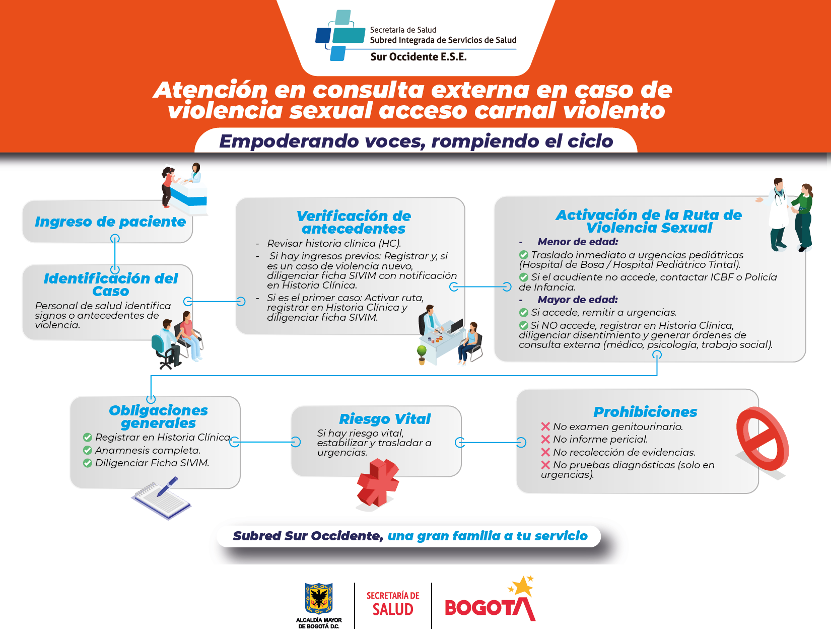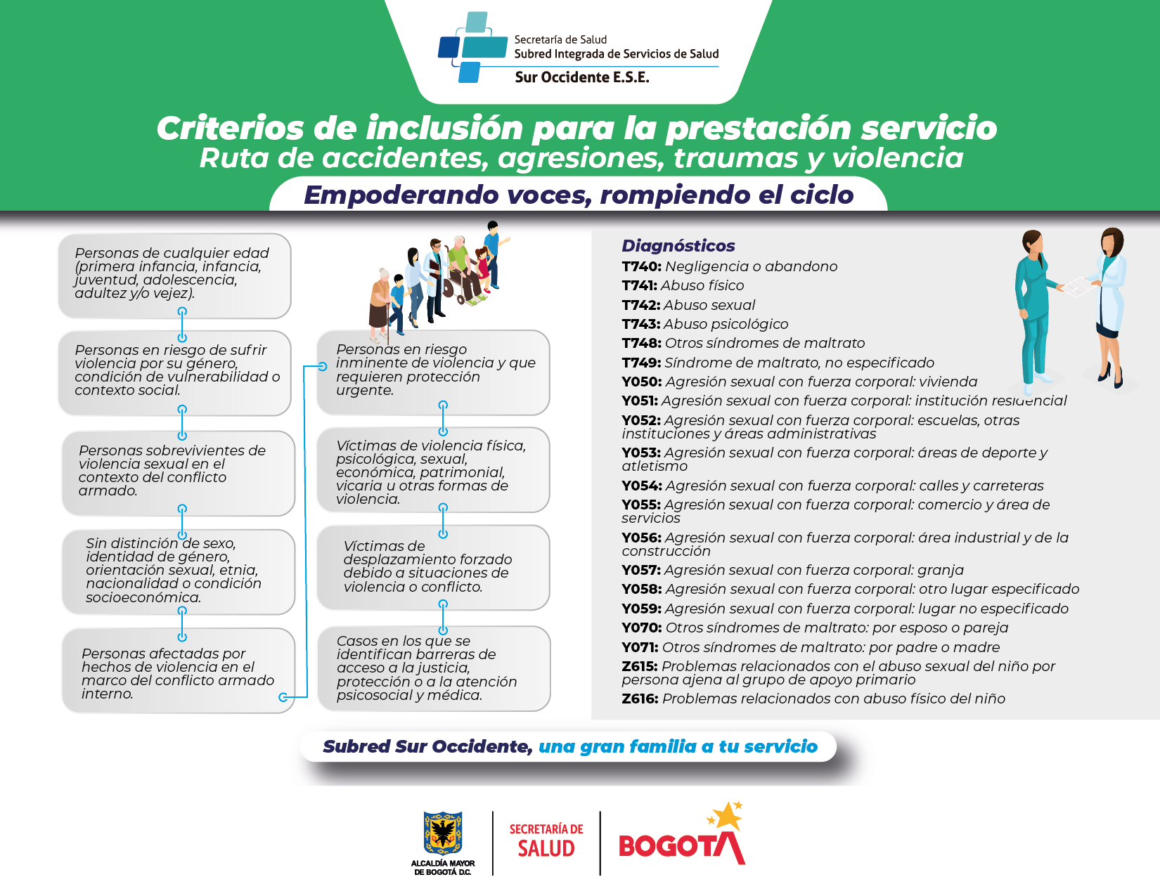 Esta Ruta 13, es liderada por la Dirección de Servicios Urgencias de la Subred, para la población identificada como víctima de agresión, accidentes, traumas y violencias.
