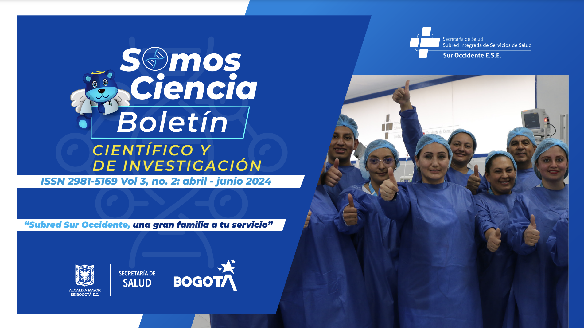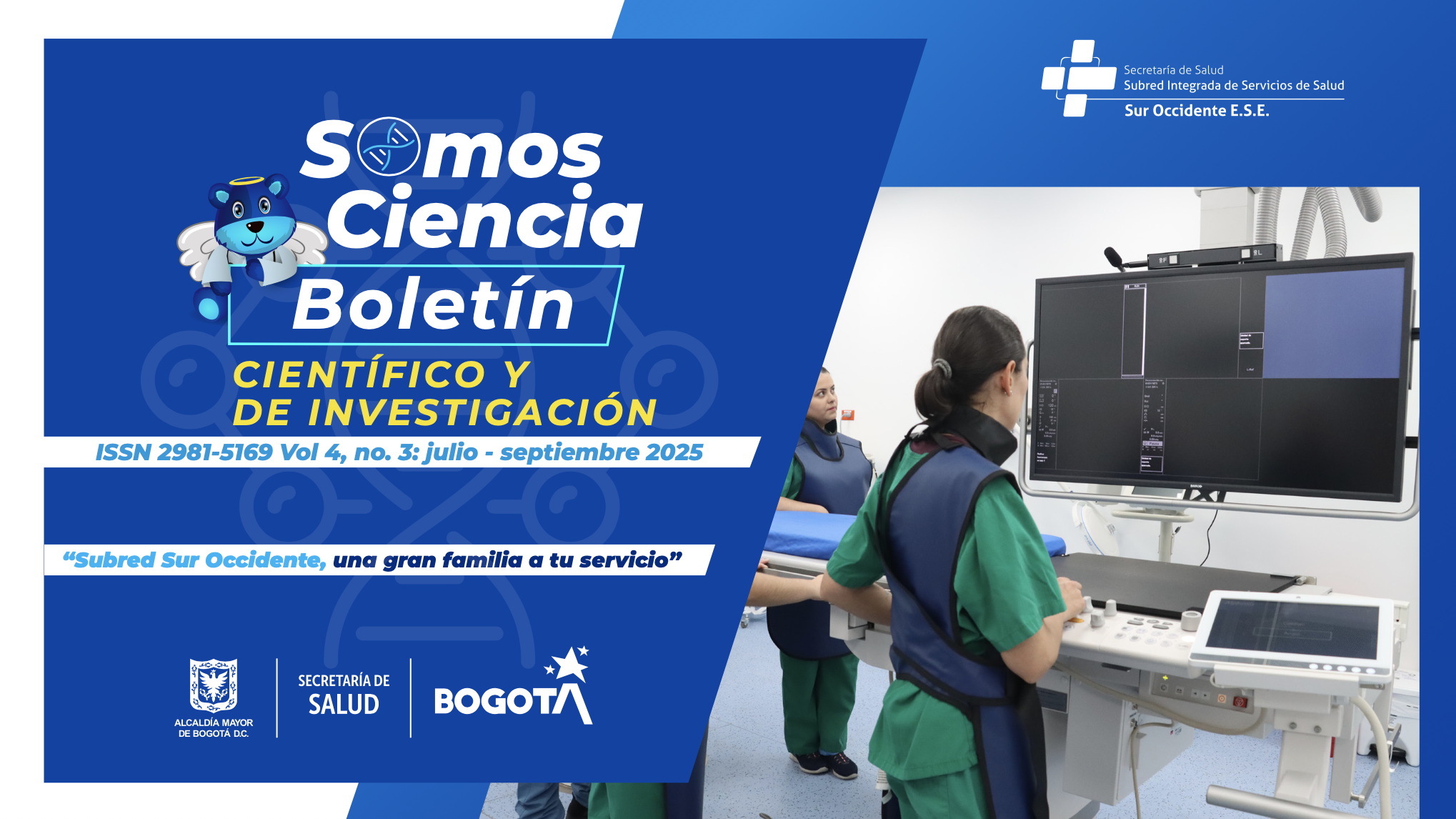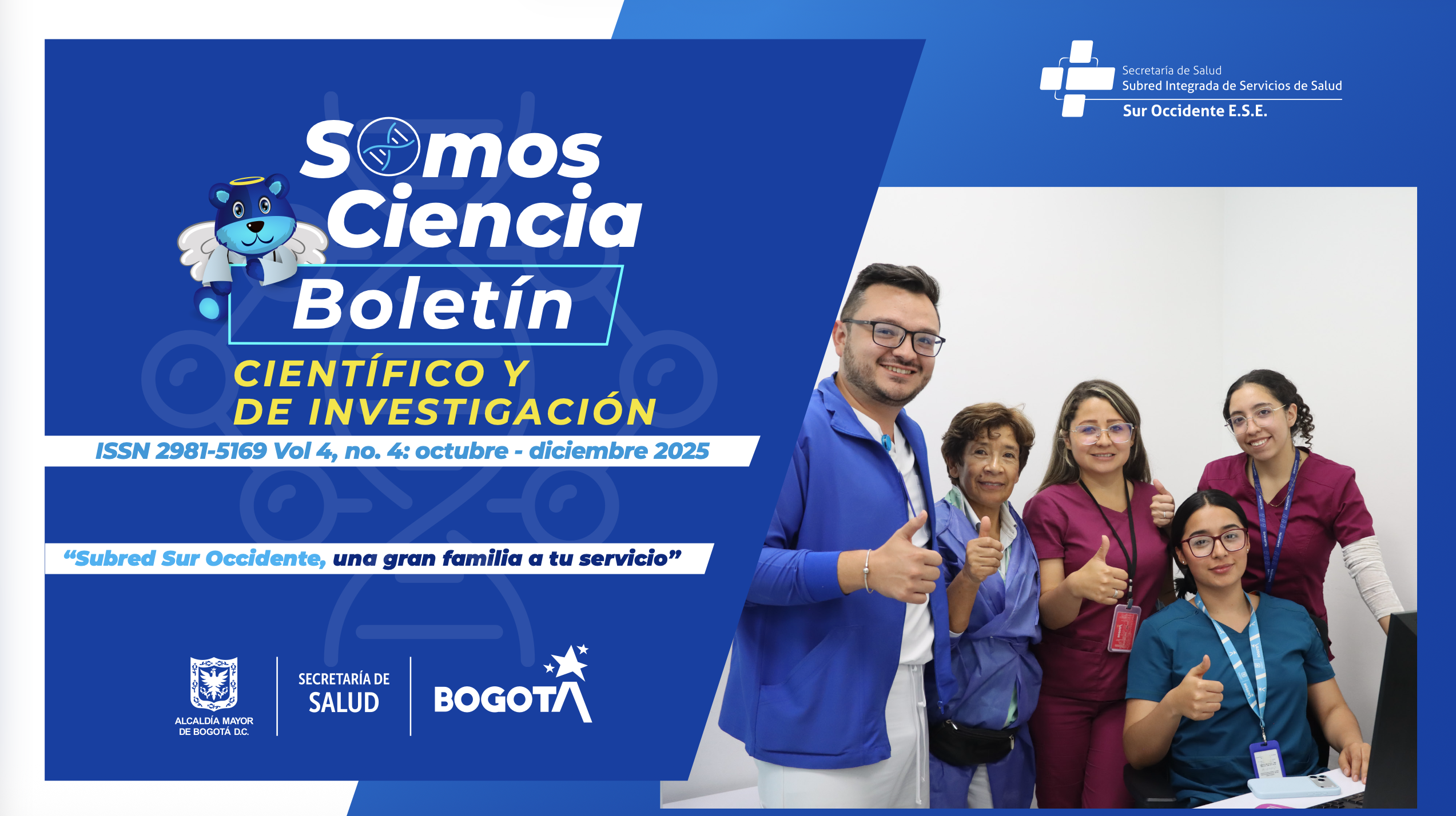 El boletín institucional “SOmos Ciencia” es una publicación periódica trimestral, de carácter científico, investigativo y académico que promociona información de interés sobre diversos temas relacionados con la salud pública. Contiene artículos elaborados por profesionales de la salud vinculados a la Subred Sur Occidente, quienes con su experiencia y desde sus áreas de competencia, deseen contribuir al fortalecimiento del conocimiento en salud para una mejor atención en los servicios que se brindan a los usuarios y/o pacientes en la red pública distrital.