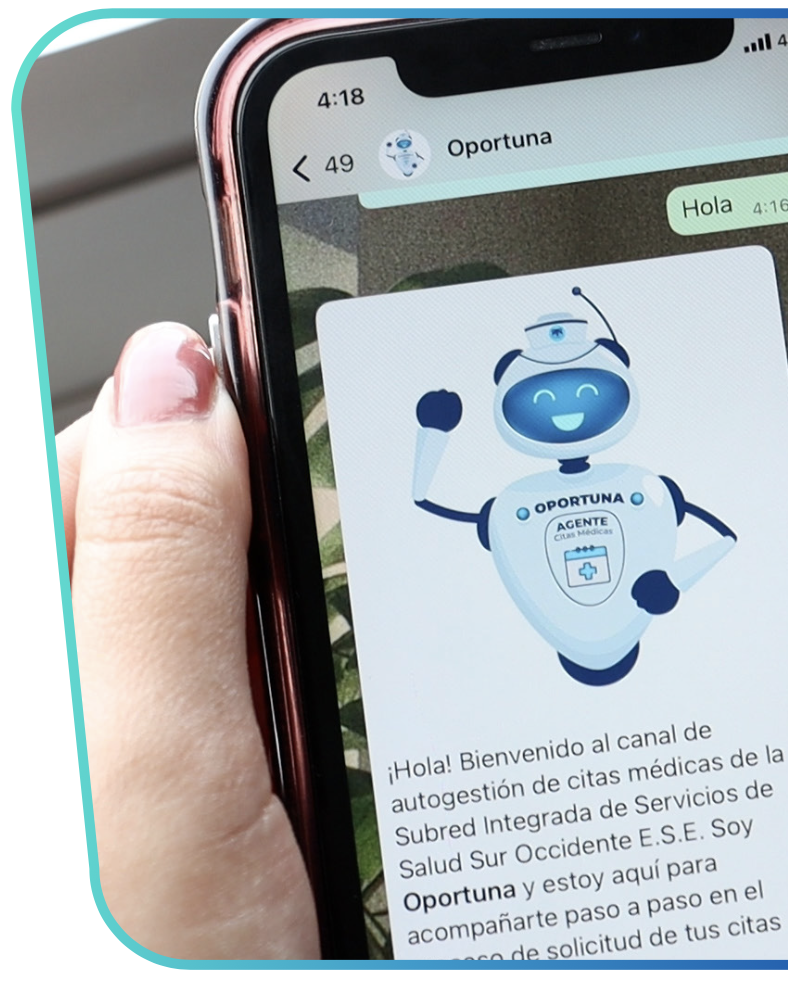La Subred Integrada de Servicios de Salud Sur Occidente amplió los servicios de su asistente virtual Oportuna, un canal diseñado para facilitar la solicitud, cancelación y consulta de citas médicas de manera rápida y sencilla.