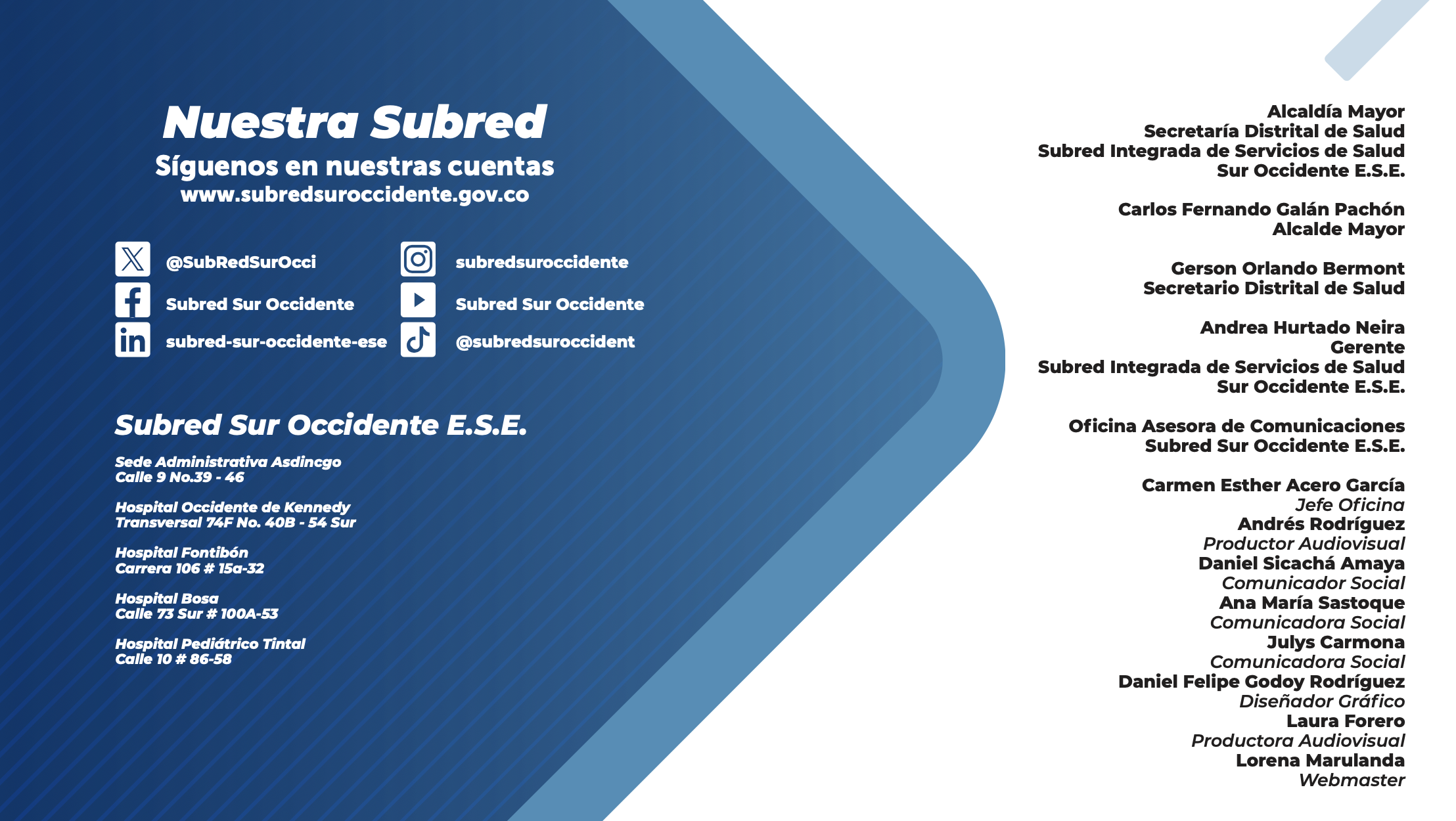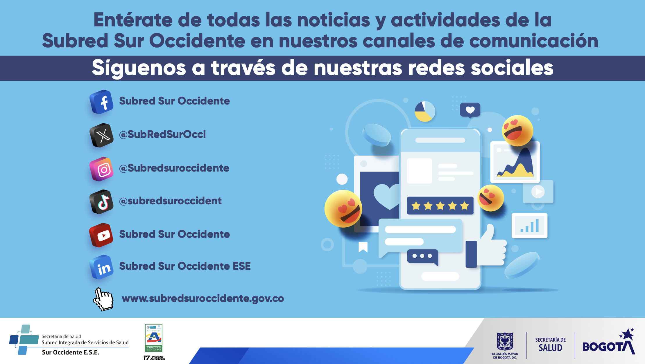 - La Subred Sur Occidente fortalece sus canales de atención con un servicio más ágil, disponible 24/7 a través del nuevo número de WhatsApp: 320 928 1821.